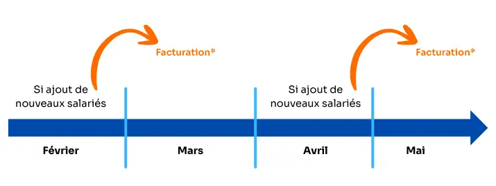 En février, j’ai déclaré 2 nouveaux salariés = en mars, je recevrai une facture pour ces deux nouveaux salariés.